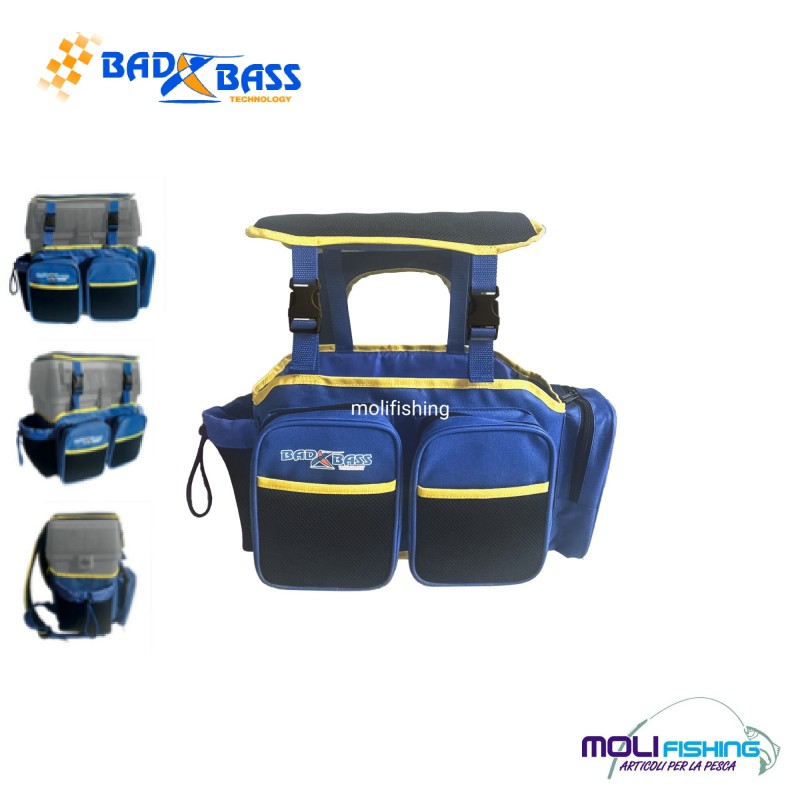 Zaino multifunzione, capace di alloggiare i più comuni cassoni da pesca in commercio.