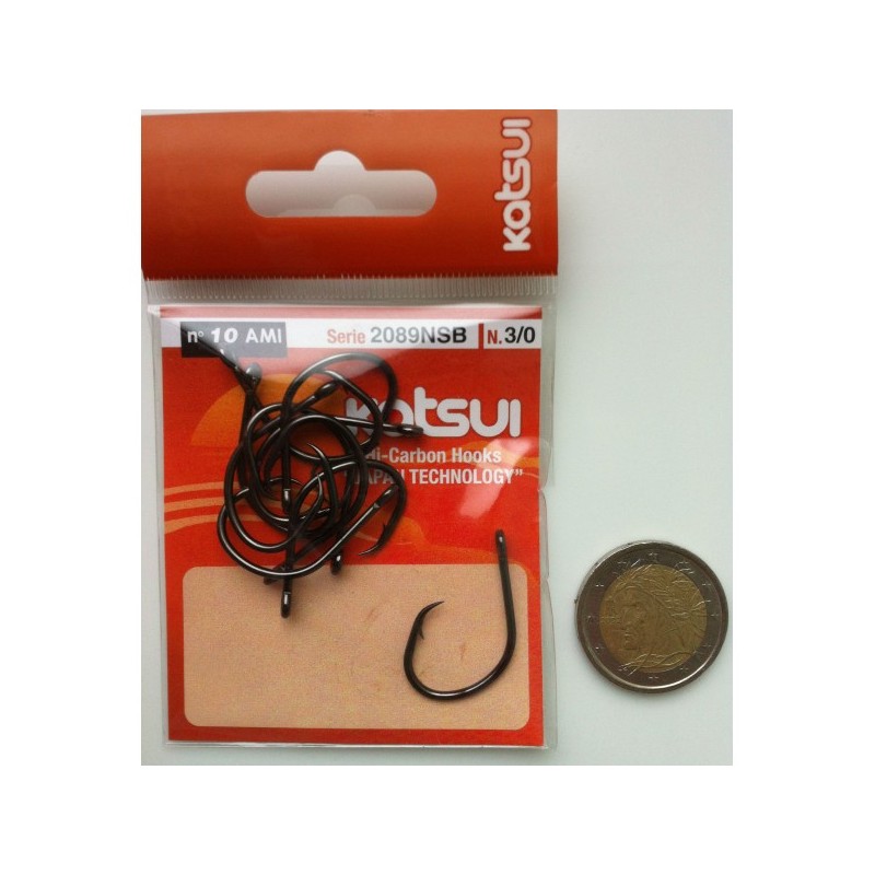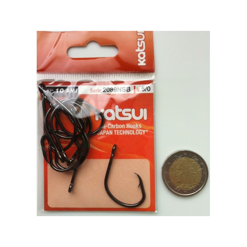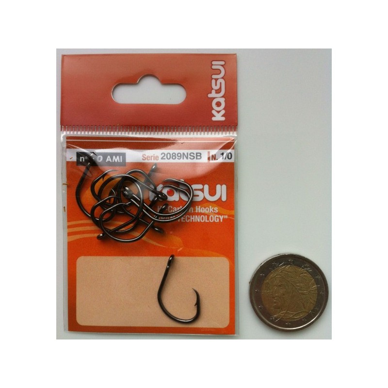 Ami Katsui autoferranti colore black-nickel con occhiello e punta rientrante circle hook. Estremamente robusto, resistente e penetrante. Ideale per il bolentino, drifting e traina col vivo. Le ottime materie prime rendono questi ami molto duraturi, qualitativamente superiori e restano affilati per tanto tempo senza spuntarsi.