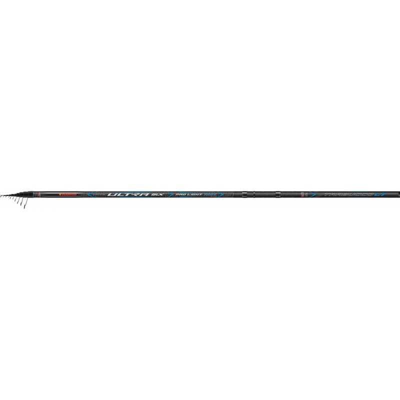 La CANNA BOLOGNESE TRABUCCO ULTRA BLX PRO LIGHT rappresenta il modello di punta progettato per la pesca in acqua dolce e salata, con una gamma di utilizzo di grammature comprese tra 0 e 10 grammi e terminali caratterizzati da un diametro compreso tra 0,10 e 0,14 mm, con un'azione di punta progressiva.