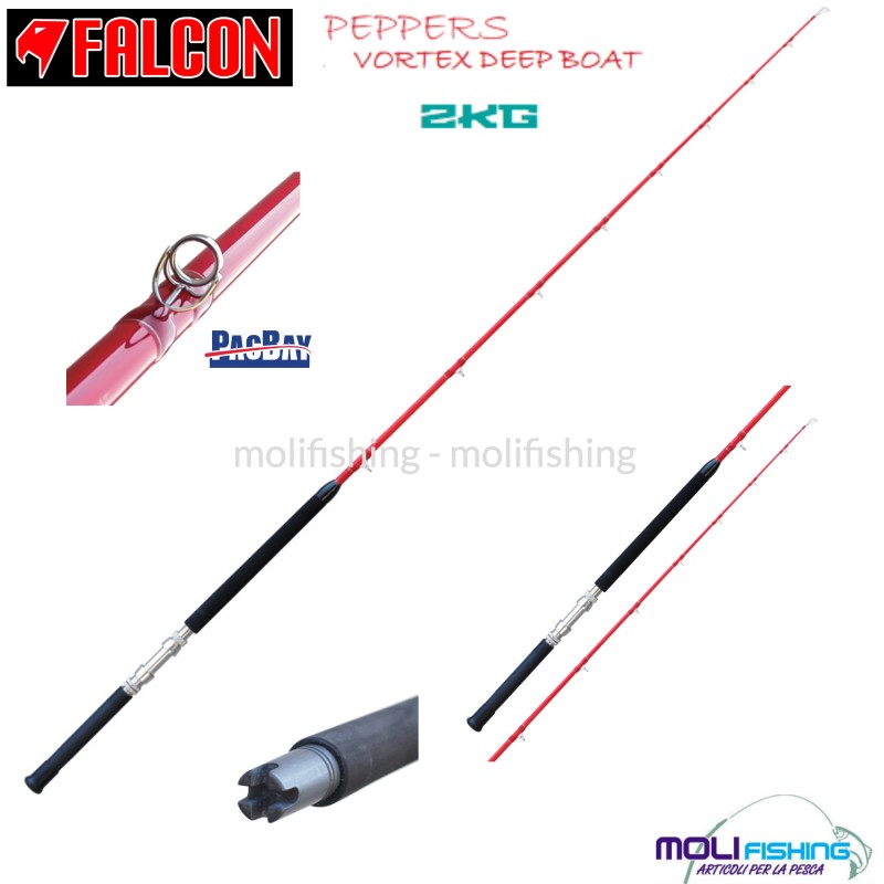 Canna da bolentino di profondità costruita con fusto in mescola di carbonio e fiberglass. Progettata, realizzata e testata per il bolentino ad elevate profondità, con mulinello elettrico. Il fusto presenta una notevole reattività e riserva di potenza ma è al tempo stesso elastico in maniera tale da consentire l'assorbimento del rollio dell'imbarcazione, frequente nelle battute di pesca in mare aperto e atto ad assorbire colpi e strappi che possono danneggiare le esche o strappare l'amo durante il recupero delle prede. E' corredata di componentistica Pac Bay con anelli in acciaio inox, porta mulinello in alluminio e manico smontabile e crociera in graphite nylon.