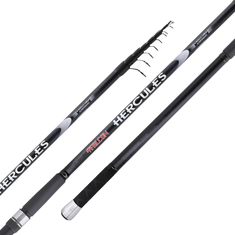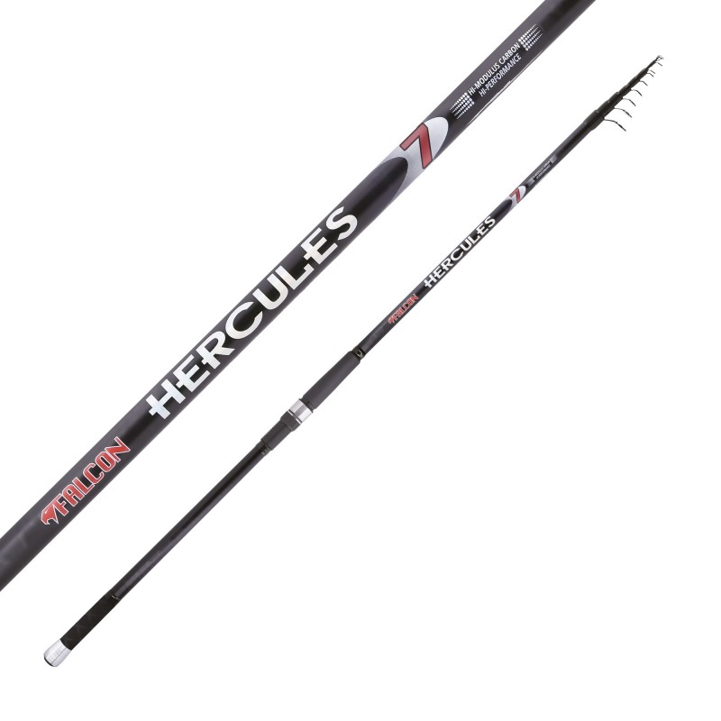 Serie di canne fiore all'occhiello della casa Falcon, la Hercules è una canna realizzata interamente il carbonio alto modulo con un rinforzo intrecciato, anch'esso realizzato in carbonio. La Hercules è una canna che è presente sul mercato da molti anni e da sempre riscontra un notevole successo tra gli amanti della pesca a bombarda, inglese e tremarella. Si tratta di una canna polivalente che permette di essere utilizzata in molte tecniche, anche con l'utilizzo del pasturatore nel beach ledgering.