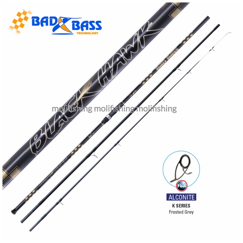 Ultima presentata dalla casa italiana Bad Bass per gli appassionati della pesca a surfcasting BLACK HAWK disponibile nella lunghezza di 420 e 450 cm con azione 250 gr by Filippo Malvagna.