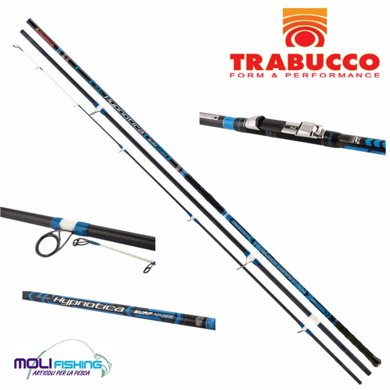 La Trabucco Hypnotica Surf 445 cm 160 grammi è una delle ultime canne nate per la pesca a surfcasting ideale per lanci lunghi. Struttura in carbonio alto modulo CXN a basso contenuto di resine, vetta ibrida con vettino in carbonio pieno per una maggiore sensibilità anche sulla lunga distanza, monta anelli di qualità SeaGuide in Sic-K series e placca porta mulinello Fuji NS taglia 7.