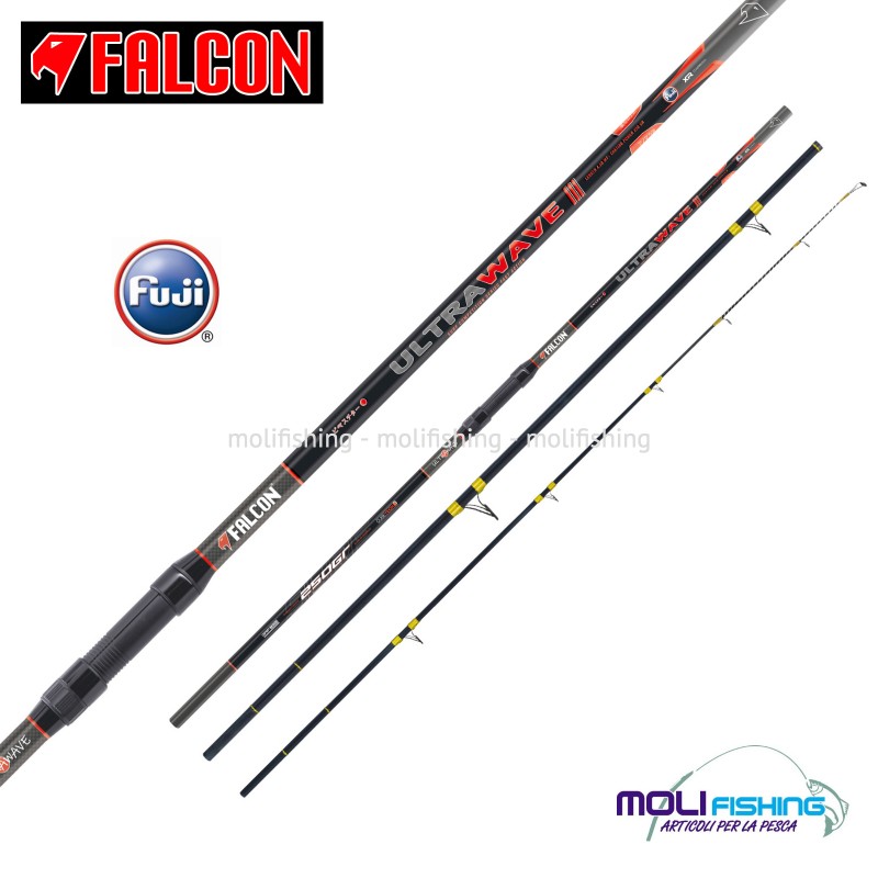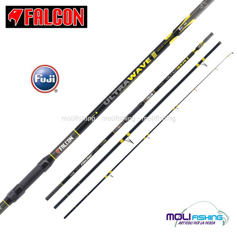Falcon con la serie Ultrawave fornisce una selezione di tre canne lunghe 420 cm con casting 150, 200 e 250 grammi capace di coprire tutte le situazione di pesca in cui un surfcaster si possa trovare.