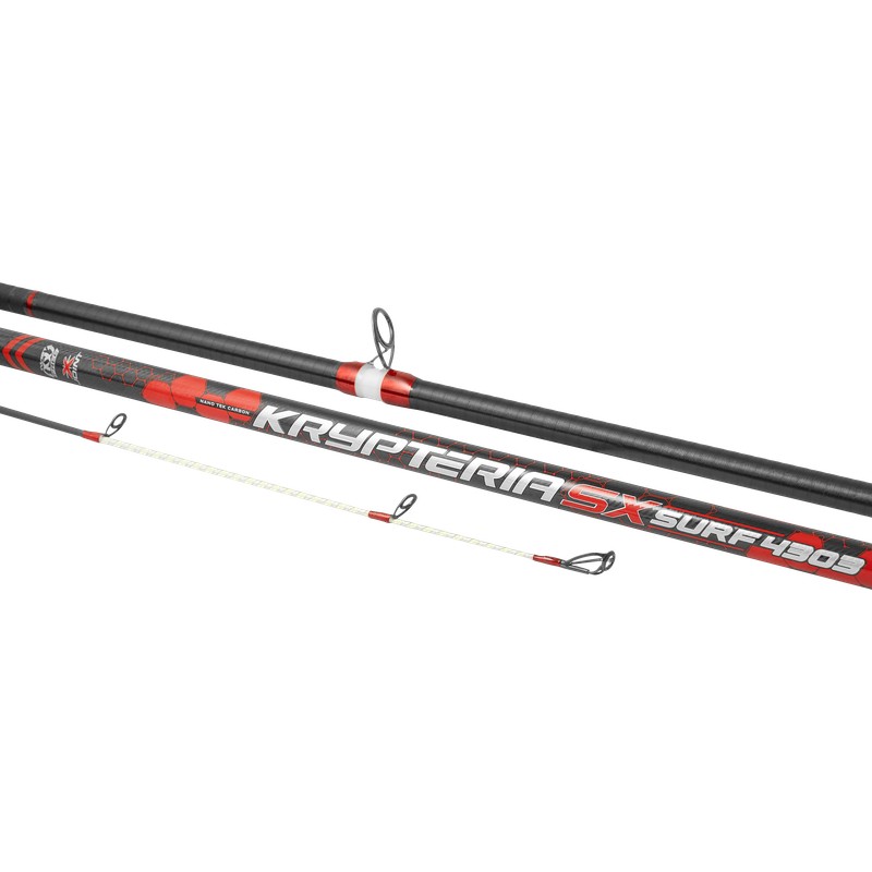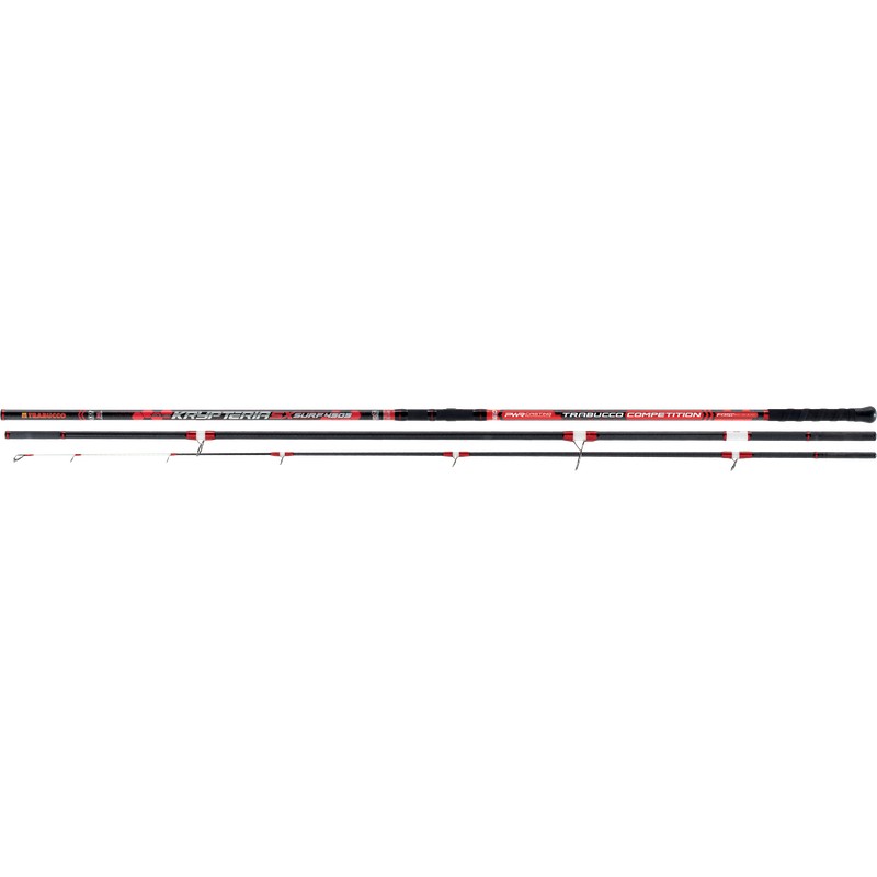 La canna da surfcasting Trabucco Krypteria SX PRO Surf è caratterizzata da una serie di tecnologie e design innovativi per ottimizzare le prestazioni durante il lancio e la pesca. Realizzata con fusti in CX Nano Carbon a basso contenuto di resina LRC, offre una struttura leggera ma resistente. La tecnologia Twist Free impedisce la torsione del fusto, migliorando la precisione e la distanza dei lanci. Gli avvolgimenti del carbonio a 45° sui giunti assicurano una curvatura perfetta e eliminano le oscillazioni del fusto. Gli anelli metallici ultraleggeri rinforzano le sezioni della canna, mentre la punta ibrida Hybrid Tip, composta da carbonio solido, offre sensibilità e prestazioni elevate. La parte finale della punta è colorata con vernice ad alta visibilità e avvolta con nastro catarifrangente per una migliore visibilità. La finitura esterna Slick Surface respinge le gocce d'acqua, evitando che la lenza si attacchi al fusto. Gli anelli Sea Guide SiC con design del telaio K in acciaio inossidabile riducono al minimo i grovigli e sono fissati mediante doppia legatura per una maggiore resistenza all'acqua salata. Inoltre, tra le legature degli anelli è inserita una fascia con filo bianco per una migliore visibilità notturna della canna. La placca portamulinello Fuji LS7 con supporto centrale removibile consente di alloggiare mulinelli di grandi dimensioni. Infine, l'impugnatura sagomata ed ergonomica offre un controllo totale durante il lancio, completando le caratteristiche di questa canna da surfcasting ad alte prestazioni.