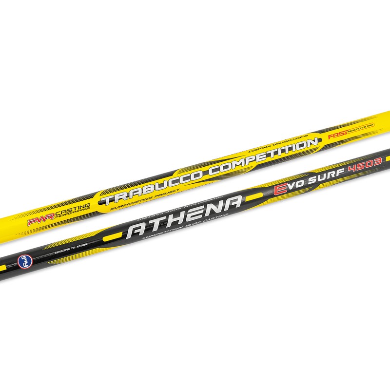 La nuova Athena EVO Surf ha una struttura in carbonio CX2 Nano Teck ad alto modulo con azione rigida e progressiva in grado di gestire lanci a lunghissima distanza, grezzo estremamente reattivo e potente in tre sezioni.