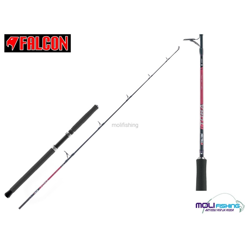 La Falcon Toka è una canna con fusto in carbonio e manico splittabile, per un totale di 180 cm in lunghezza ed un casting dichiarato di 100-200 grammi.