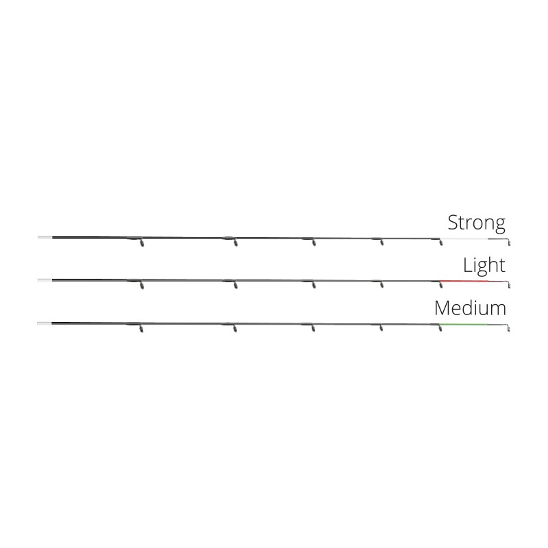 Cimini di ricambio in carbonio con anelli per canne da Feeder disponibili in 3 misure e con 3 azioni differenti.