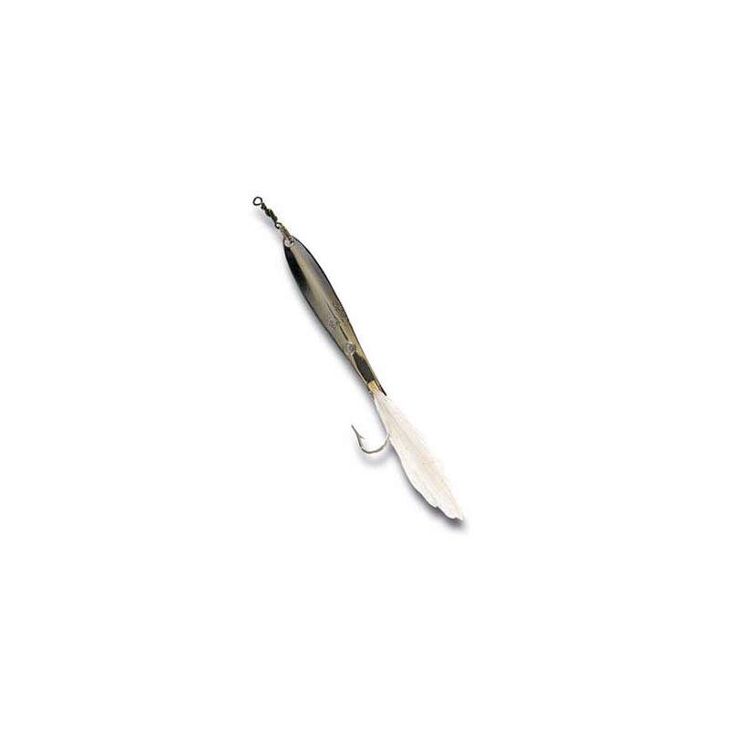Cucchiaino tipo granpescatore con piuma e amo singolo.