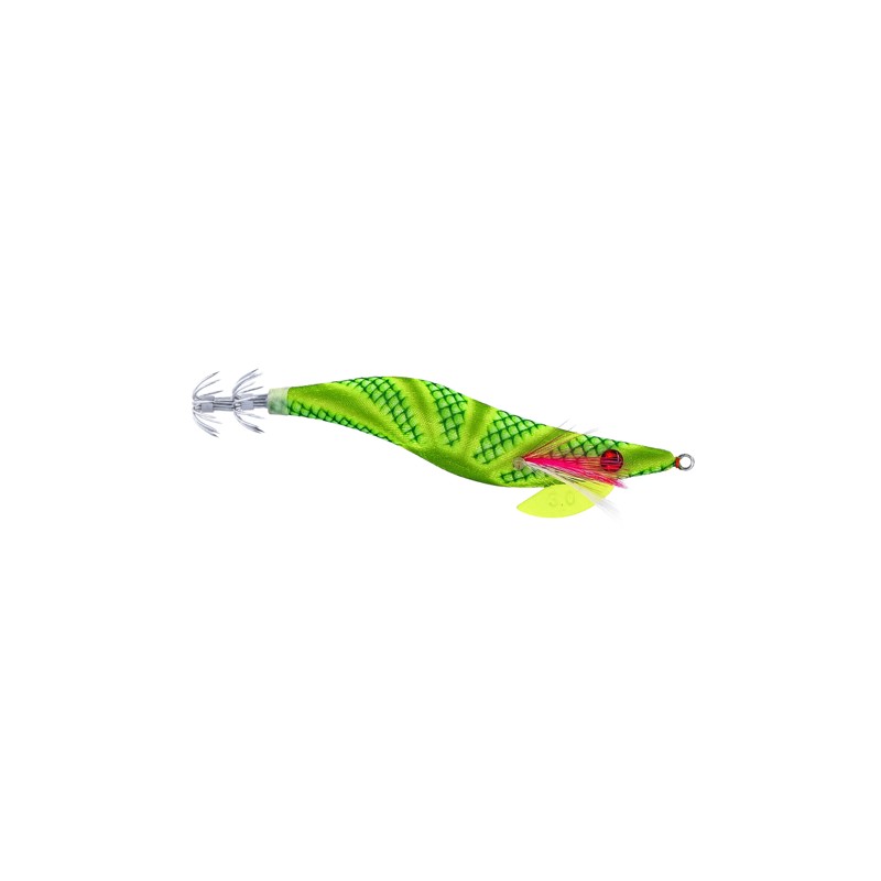 Artificiale ideato per la pesca alla seppia e al calamaro dalla barca ma anche da riva con la tecnica dell'eging ossia spinning a seppie.