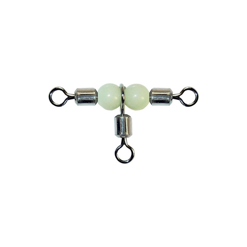Bulox girella tripla Joint Tripca, rigida con tre girelle rolling all'estremità in acciaio inox, al centro perline fluorescenti rigide che facilitano la libertà di movimento della girella centrale ideale per la costruzione di travi per la pesca a bolentino e dalla barca.