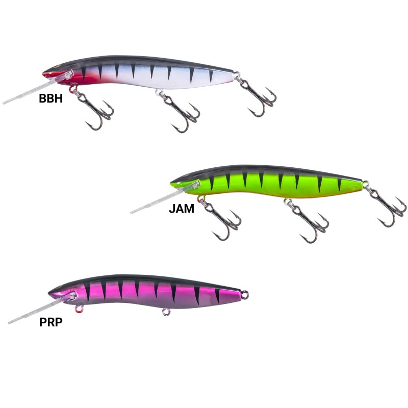 Un artificiale caratterizzato dal nuoto vibrante e frenetico, con armatura passante in acciaio viene distribuito nella versione 120 mm dal peso di 16 grammi con 2 palette intercambiabili che permettono di selezionare il range di azione dell'artificiale nella colonna d'acqua consentendo di pescare ad una profondità di 3 o 8 metri a secondo delle necessità che si vengono a creare.