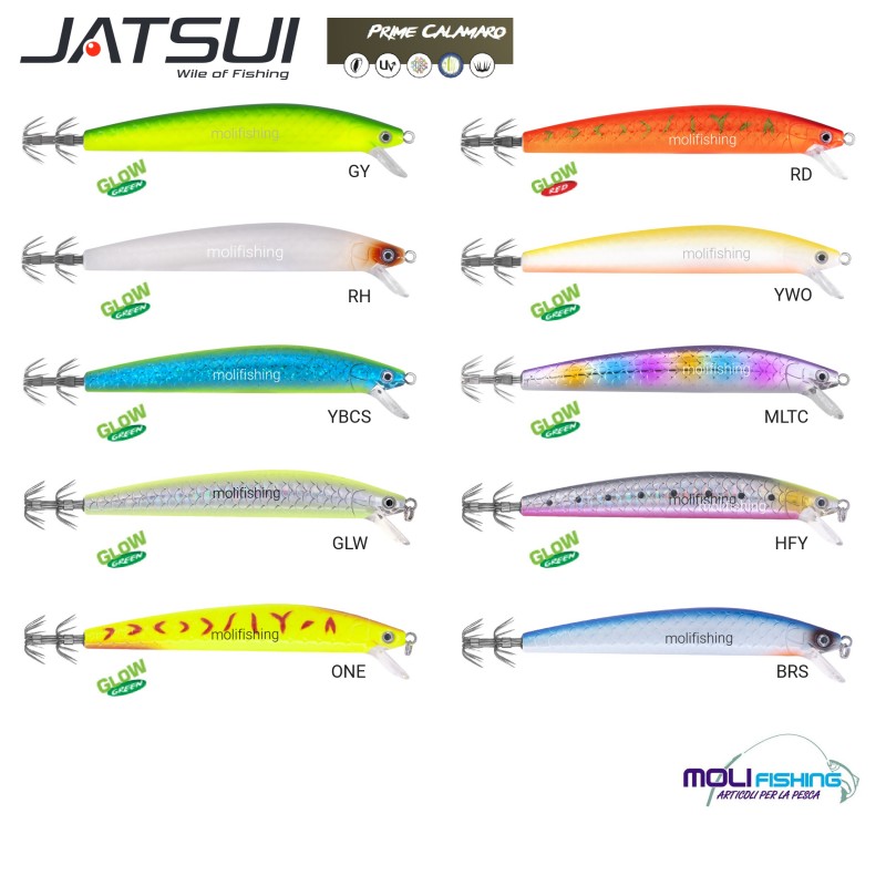 Il Prime Calamaro è un minnow dell Jatsui concepito per la traina costiera ai cefalopodi, utilizzabile sia con affondatore che con montature a "bandiera" su braccioli multipli o a recupero dalla riva. Il profilo affusolato ed aerodinamico garantisce un nuoto naturale simulando alla perfezione il movimento del pesce.