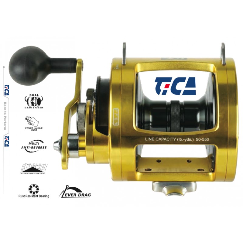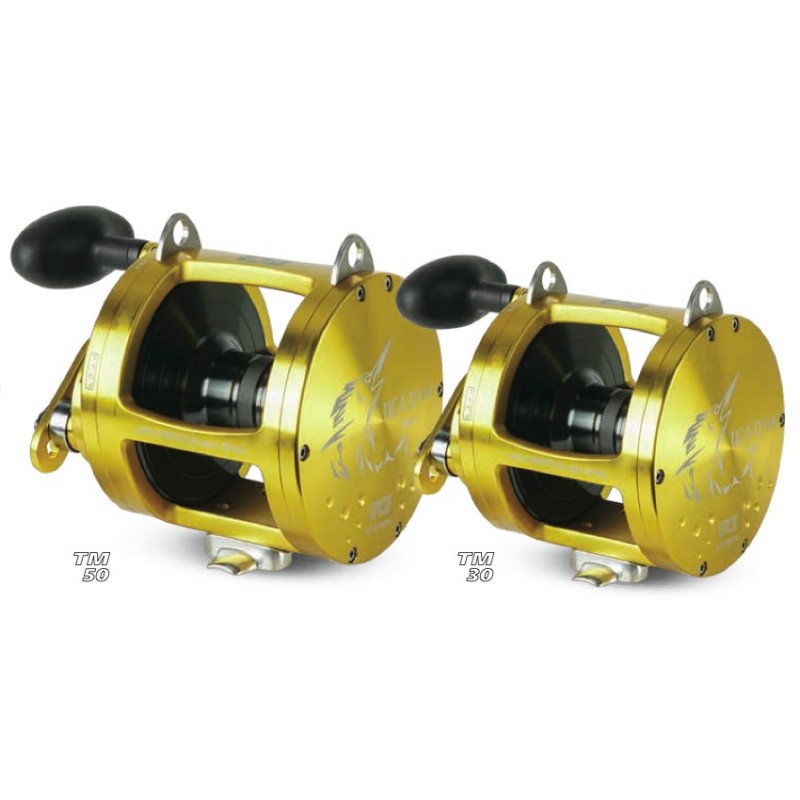 Dall'evoluzione di un best seller tra i mulinelli per la pesca a traina Tica, nasce la nuova serie di mulinelli TM. Il corpo e la bobina sono realizzati in monoblocco di alluminio tornito e trattato con uno speciale trattamento anticorrosione. Tutta la parte meccanica, gli ingranaggi e il pignone sono in acciaio marino anticorrosione. E' dotato d 6 cuscinetti in acciaio schermato anticorrosione, oltre due maxi cuscinetti antiritorno, posizionati su entrambi i lati della bobina. La frizione è realizzata con dischi in carbonio, ed il selettore ha una regolazione micrometrica. Disponibile in misure dal 12 al 50 lbs, la 12 lbs è proposta con bobina narrow N (stretta) o normale è adatto a qualsiasi tecnica di pesca dalla barca, dalla traina col vivo, alla traina in altura e al drifting al tonno. Vengono proposti in 2 colorazione Gold e Gun Smoke.