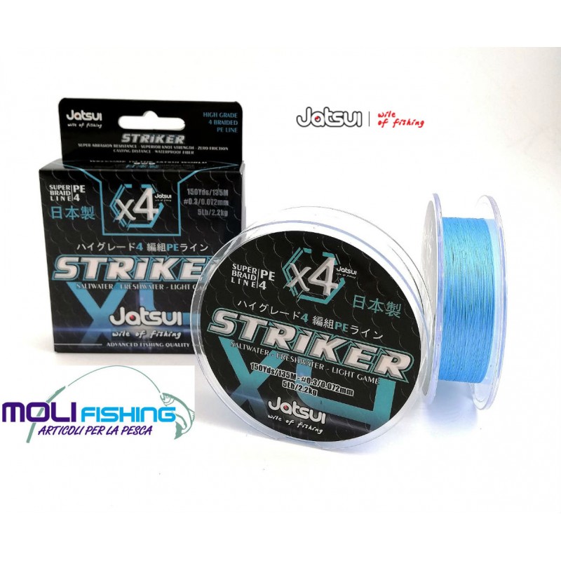 Striker X4 della Jatsui è un trecciato PE puro di altissima qualità, estremamente morbido e decisamente leggero, caratteristica che ne garantisce elevate prestazioni nel lancio ed in pesca. La tessitura dei capi è estremamente compatta così da ottenere un trecciato ultra sottile anche nei libraggi più elevati.