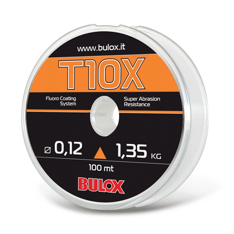 Il T10X è un monofilo made in Japan di utlimissima generazione. Filo polivalente con speciale rivestimento in fluoro coating che gli garantisce grandi qualità di impermeabilità e di resistenza ai raggi UV. Il T10x è molto valido sia per l'utilizzo di terminali sia da mulinello. Disponibile nei diametri dallo 0.12 allo 0.60 mm , diametri e carichi di rottura sono perfettamente calibrati. Possiede un'ottima tenuta al nodo, elevata resistenza all'abrasione e un eccellente carico di rottura.