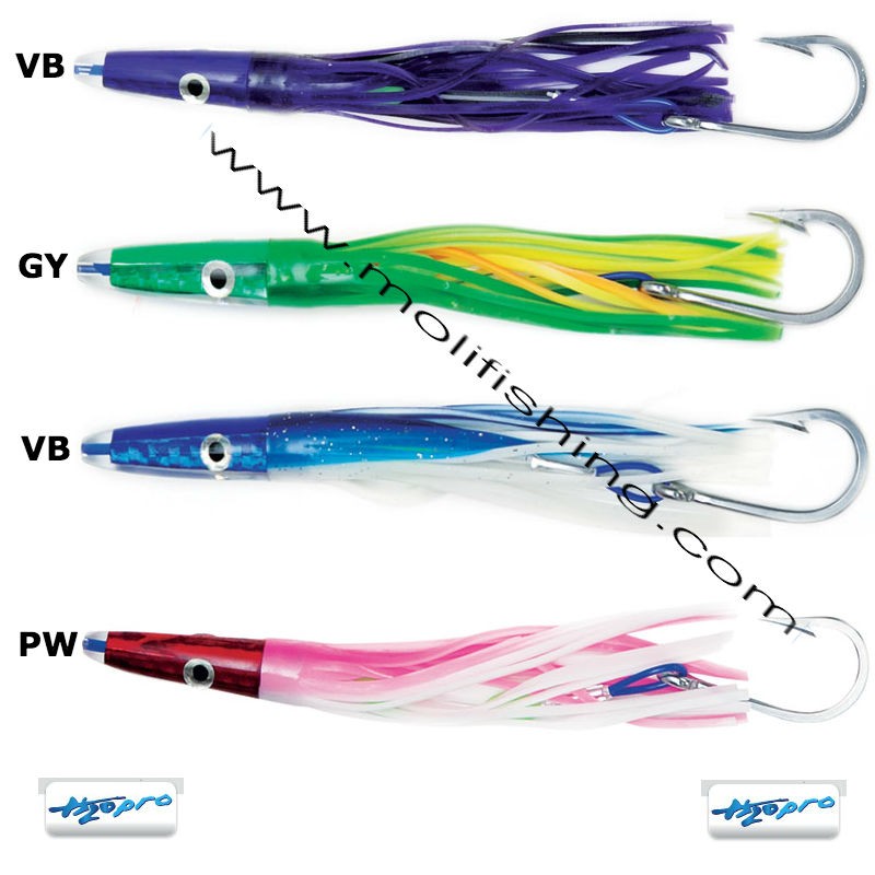 Artificiale octopus H2Pro Mean Machine per la pesca a traina d'altura con testa idrodinamica , corpo in silicone e montatura con nylon e rivetti e amo numero 7/0.