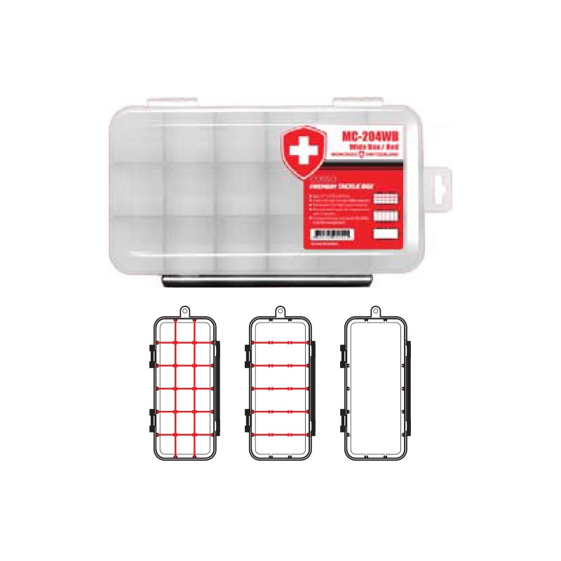 Scatola Moncross MC 204 WB realizzata in ABS porta artificiali, accessori e minuteria da pesca fino a 8 scomparti regolabili.