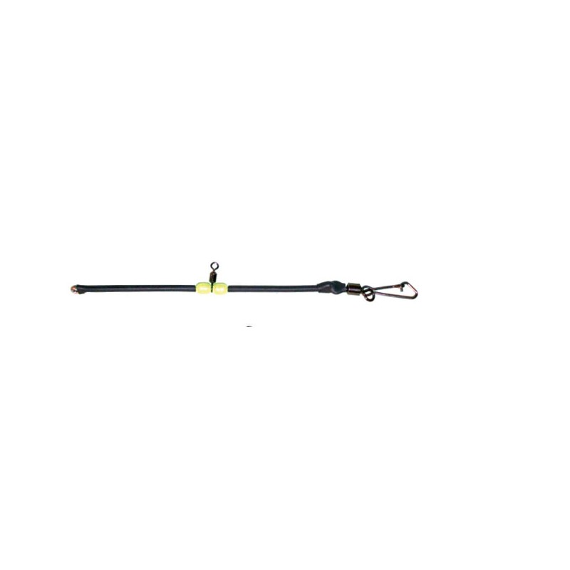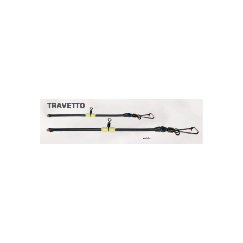 Bad Bass Travetto ideale per la pesca a surf casting in acciaio in 2 misure con girella rolling fissa tra due perline fluo per poter collegare il terminale e moschettone con girella finale per attacco piombo.
